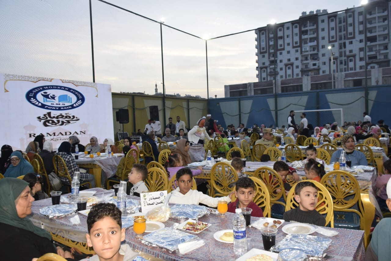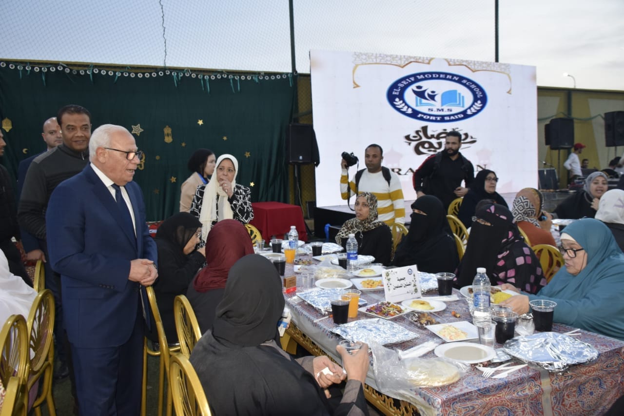 الإفطار الرمضاني لنزلاء دور الأيتام والمسنين بمدرسة السيف بحضور اللواء عادل الغضبان محافظ بورسعيد